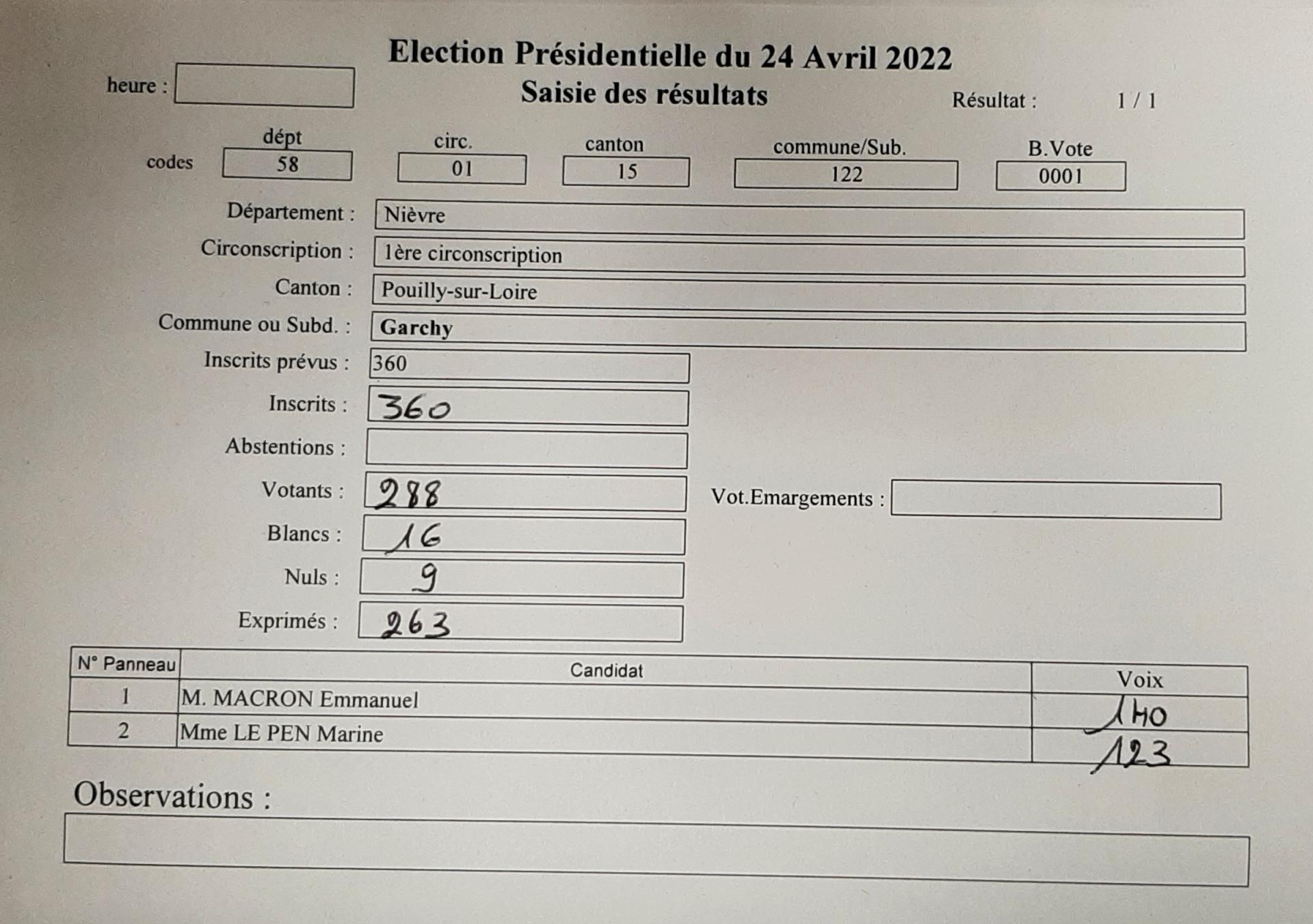 Macron Emmanuel : 53.23% Marine le Pen :46.77% ...